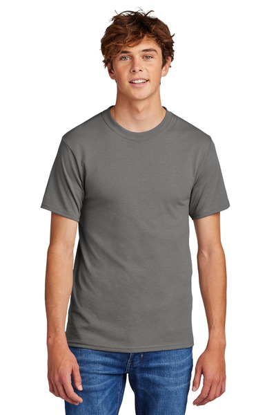 An indispensable t-shirt in our classic silhouette&mdashwith a very friendly price.. 5.4-ounce, 100% cotton. 90/10 cotton/poly (Athletic Heather). 50/50 cotton/poly (Neon Blue, Neon Green, Neon Orange, Neon Pink, Neon Yellow, Dark Heather Grey, Heather Athletic Maroon, Heather Purple, Heather Navy, Heather Red, Heather Royal, Heather Sangria, Heather Dark Chocolate Brown, Graphite Heather). 98/2 cotton/poly (Ash). Removable tag for comfort and relabeling. Due to the nature of 50/50 cotton/polyester neon fabrics, special care must be taken throughout the printing process.